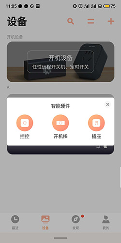 5、添加智能硬件可以选择控控、开机棒以及插座。
