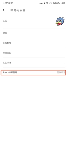 首先我们登陆网易BUFF,然后在我们的个人信息界面点击我们的头像,就能看到下面的一个Steam账号管理,没有绑定的话他是会显示为绑定状态的,点击这个选项。