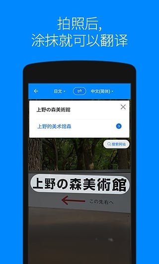 将化妆品,药品,招牌上的外文用手机拍下来并用手指触摸想要翻译的句子,就会出现翻译结果。