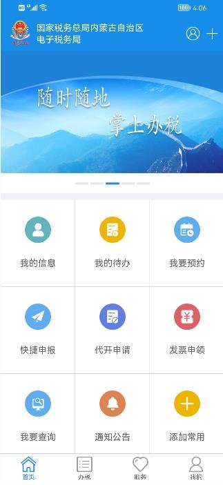 内蒙古税务局APP为蒙古同胞们提供的内蒙古税务网上税务局服务平台,提供办税指南、涉税查询、网上办税、纳税咨询等权威信息与服务。国家税务总局内蒙古自治区税务局推出的以“网上办税和移动办税为主、实体大厅和自助办税为辅”的“2+2”办税服务新体系,在内蒙古税务局app中你可在线预约商务服务,跨区域涉税事项报验登记缴等。