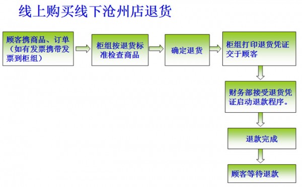3、可到沧州信誉楼实体店销售此商品的柜组直接退货