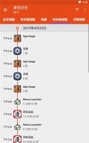 ★ 显示应用使用历史:手机您使用的应用的使用时间信息