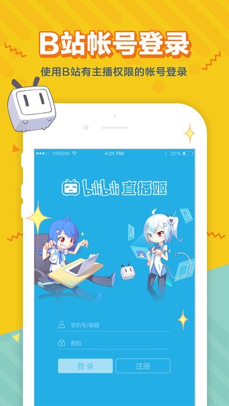 一键开播功能,登录后可直接推流至哔哩哔哩直播间,只需手指轻轻一点