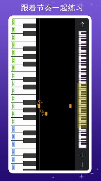 - 智能练习:根据按键提示,哪里亮点哪里,不需看懂五线谱也能弹钢琴,使用这款钢琴游戏五分钟上手弹《小星星》