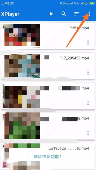 1、进入xplayer界面后,等待一会,我们就可以看到当前手机上的绝大多数视频了,点击右上角的圆点图标