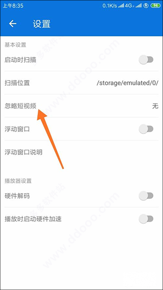 4、我们还可以设置中看到此时并没有忽略短视频