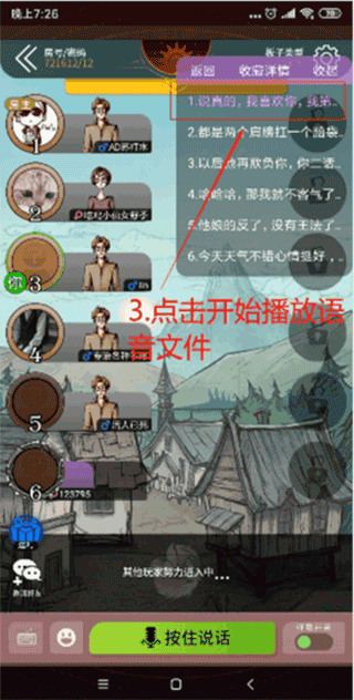 在语音包正在播放的同时,点击游戏中的麦克风【按住说话】,房间内的所有人都能听到语音包发出的声音