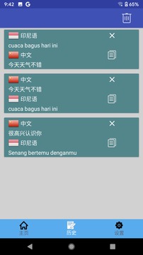 印尼语翻译APP是一款非常实用的印尼语翻译手机软件,它支持吧印尼语翻译成中文,这款软件使用简单,翻译快速!在印尼的朋友必备佳品,让你可以无障碍和印尼语国家或者中国人沟通交流。是出国旅游和交流的必备软件,有需要的朋友可以下载使用!