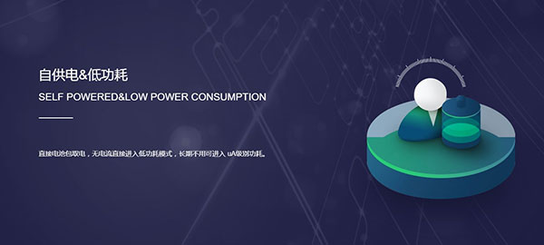 直接电池包取电,无电流直接进入低功耗模式,长期不用可进入UA级别功耗。
