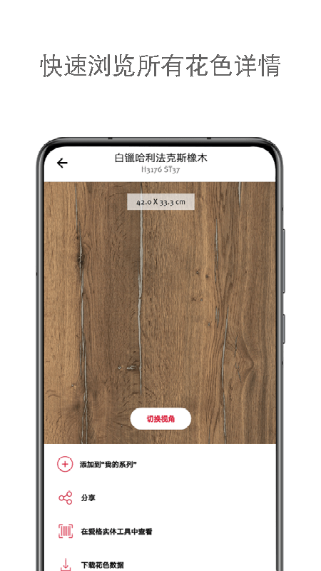 爱格app是一款专门为用户带来专业的室内装修服务类软件,许多用户在家为自己的新家挑选地板时,都要花费特别多的时间来回奔波,特别的麻烦!而爱格app是能够帮助用户完美的解决这个问题,在爱格app中,为用户们提供了这几件非常热门的全部室内地板的系列,也包括了地板花色。扫描功能能够帮助用户查看地板使用效果,非常的方便!有需要的用户快来下载爱格app吧!