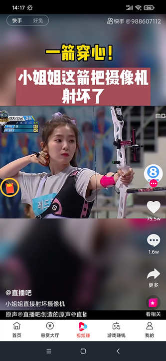 打开赏帮赚APP之后,我们就可以看到底部有个“视频赚”的按钮,点击进入之后就可以看视频啦,与抖音的页面是很像的,刷一会就能赚1元钱,不要太简单哦