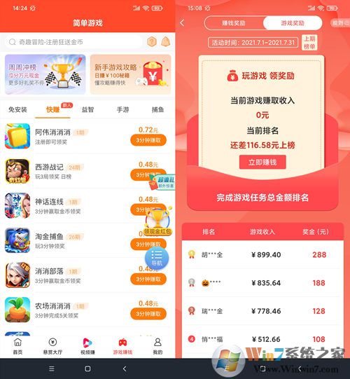 赏帮赚APP里面也是有很多小游戏的,我们点击“游戏赚钱”的按钮,就能看到里面的游戏啦,选择一个自己喜欢玩的游戏,按照要求试玩就能赚到钱啦,另外还有排行榜的奖金