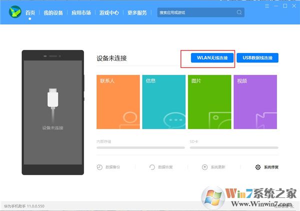 1、首先需要在电脑上下载华为手机助手,之后在电脑端中点击WLAN无限连;