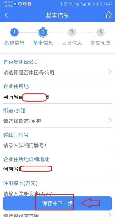 4.进入后,进行注册公司企业基本信息的审核,输入准确需要输入的企业信息,点击输入进去,然后点击下一步。