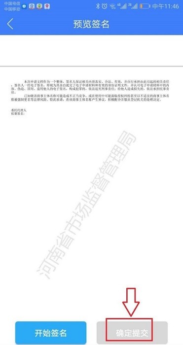 6.签名,输入验证码,检查确认输入的企业信息和个人信息,点击确定提交。