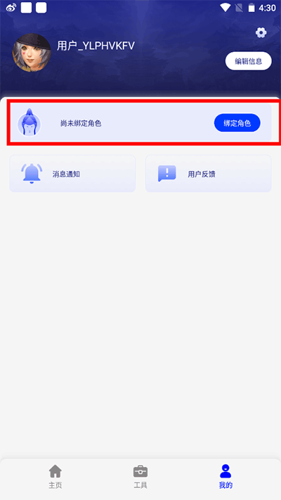 3、点击右下角我的,就可以绑定自己的游戏角色,领取福利了。