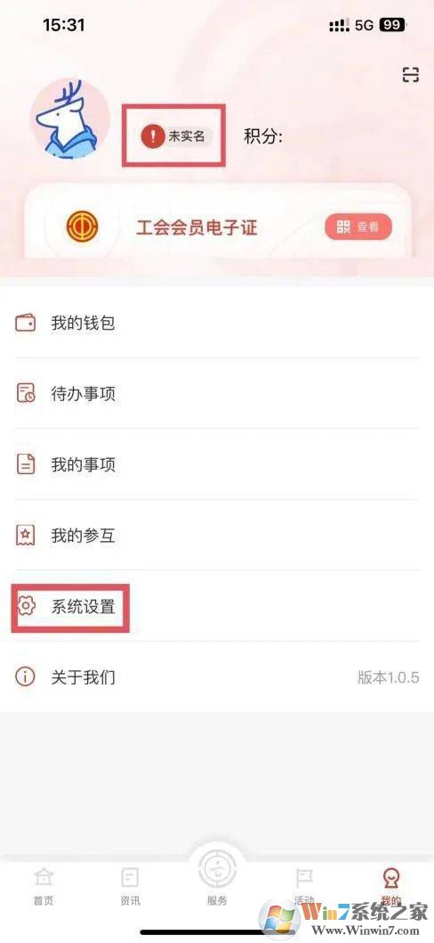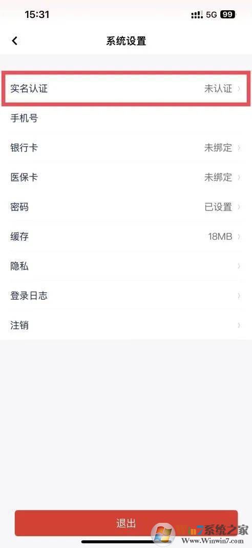 注册完毕后,在“我的”页面中,点击头像、用户名旁边的“未实名”标识或“系统设置-实名认证”进行用户实名。