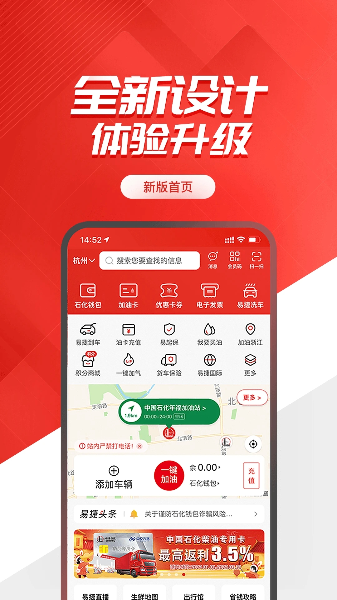 【易捷加油】易捷加油(原名加油中石化),是中国石化销售股份有限公司唯一的“油气氢电服”一站式综合服务平台。易捷加油以“方便快捷”为使命,一键加油加气、加油卡充值预分配、我要买油、网上购物及到家/到车/到店服务、洗车服务、电子发票、会员权益、积分兑换、充值缴费、信息查询等服务和产品,并通过线上下单、到车到家的方式,让用户享受到贴心、快捷的一站式服务体验。易捷加油在全国范围内联合3万家加油站,2.1万家便利店,覆盖全国32省,为全国车主提供正品、专业的养车服务,令您出行更便捷,为美好生活加油。