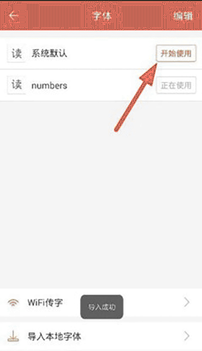 3、用户就可以在字体页面选择字体使用,如果没有字体,可以通过WIFI传字或者本地导入获取字体