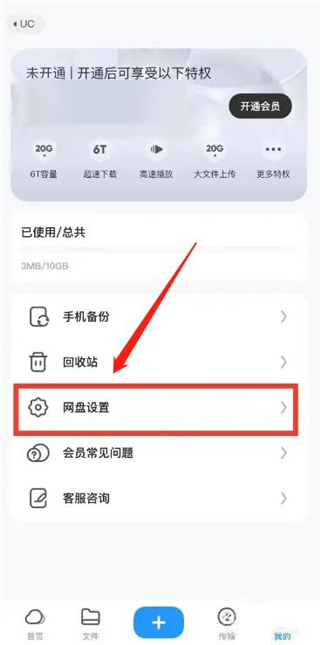 第一步,首先我们打开app,接着在我的界面选择网盘设置选项。
