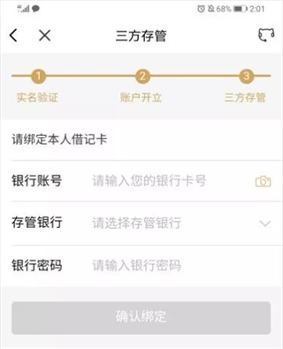 8、进入三方存管,绑定本人的银行