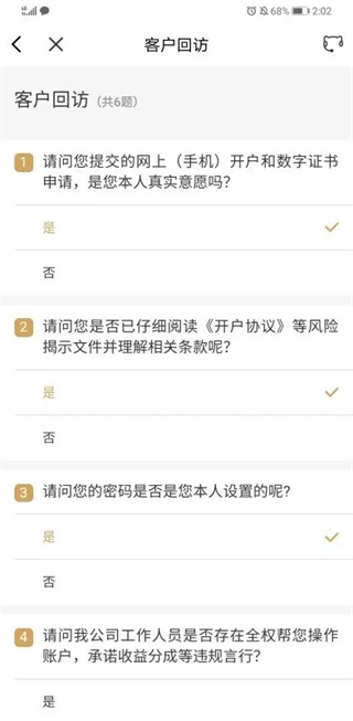 回访再次确认本次操作是否本人亲自完成,回访结束,开户的操作也就进入尾声了。