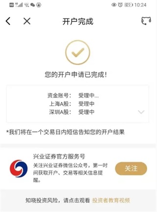 10、开户完成,等待审核通过