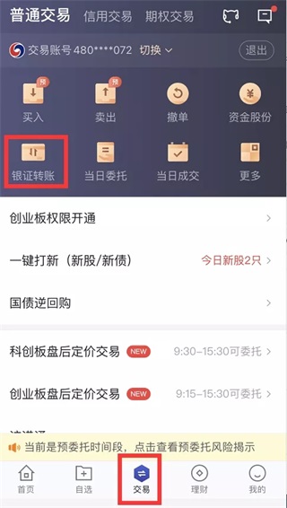 想要在证券账户中做任何交易,都需要把银行卡的资金,通过银证转账,转入股票账户。(同样的方法,还可以把证券账户的资金,转回到银行卡内)。银证转账一般只在交易日(或交易附近)的时间可以进行。