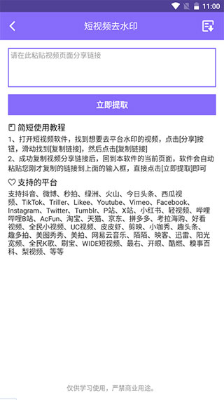 复制视频链接,一键提取多平台无水印视频,简单好用的视频去水印工具;