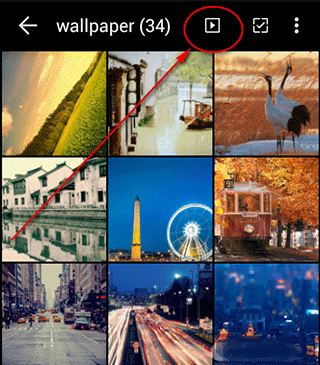 2、可以在相册中看到当前相册中的图片缩微图,点击右上角的【幻灯片播放】按钮可以以幻灯片的形式自动播放相册中的图片。