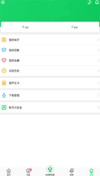 设置里面是我们挑战各项参数的地方。如果想看自己的帖子和回复可以在空间当中寻找,还支持查看浏览的历史;