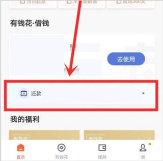 1、进入到百度钱包app软件首界面中之后,在该页面中我们找到还款这个选项,点击进入。