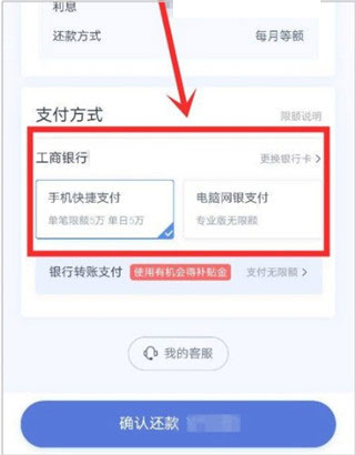 3、进入到还款这个页面中之后,在该页面中我们找到并选择好支付方式,点击选中。