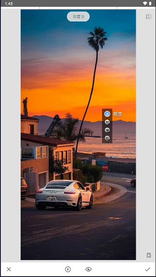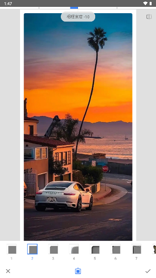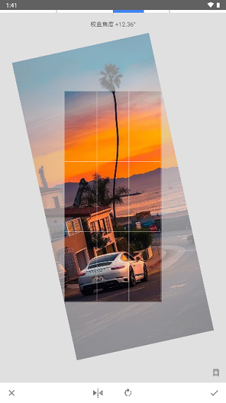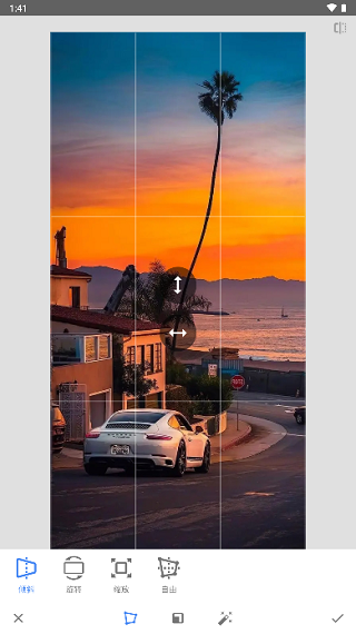 裁剪:主要是对画面进行裁切,如果照片拍摄到多余的前景或背景,通过裁切画面能够获得更好的构图,这里可以自由裁切,也可以选择下方的裁剪比例进行裁切。