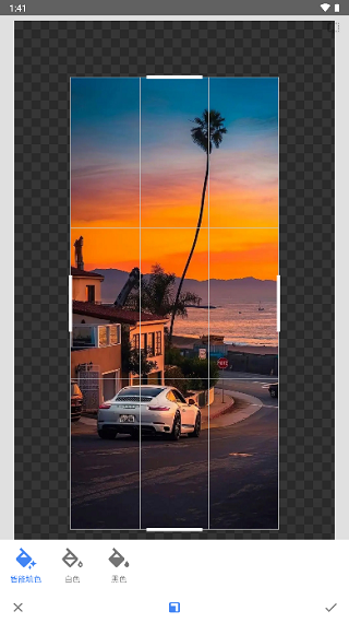 展开:展开中内容与操作并不复杂,它主要作用是可以在构图太满时进行二次修正,以及能更加自由地给照片添加边框(白边框、黑边框)。点击展开框的边缘即可调整展开大小以及范围。双指闭合可以按比例进行调整。展开操作后会进行智能填补。其选择以及使用性跟变形一样,智能填色都要在纯色、有规律或边缘不复杂的画面中展开。