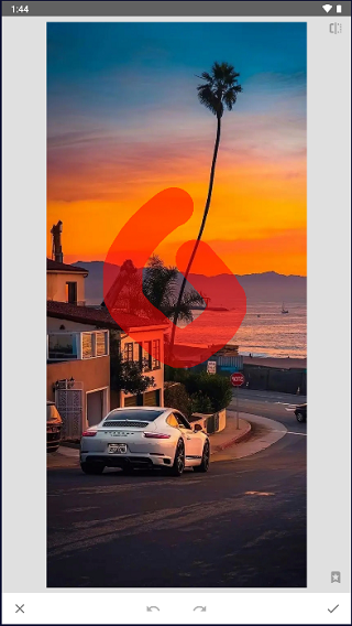 修复:主要作用是处理画面中的杂物和污点,对于比较小的背景杂物处理还不错,但是对一些比较大的背景杂物处理就不够好了,处理得不够干净,画面会留有痕迹,处理效果不如专门的杂物修复软件TouchRetouch。在进行杂物清除时,直接对背景杂物进行涂抹即可,若背景物比较混乱,可以用两个手指放大照片至最大,然后再一点点涂抹杂物进行清除。