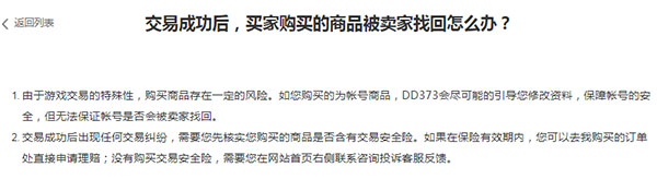 DD373游戏交易平台安全吗?Dd373买号被找回怎么办?