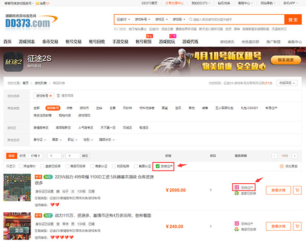 1、在商品列表,您可以勾选只显示“支持过户”的商品,或挑选服务保障包含“支持过户”的商品。