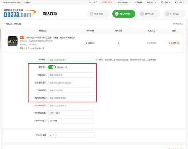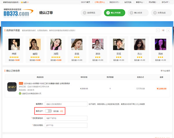 4、如您选择了过户服务,帐号交易成功后,客服会主动为您完成过户操作。