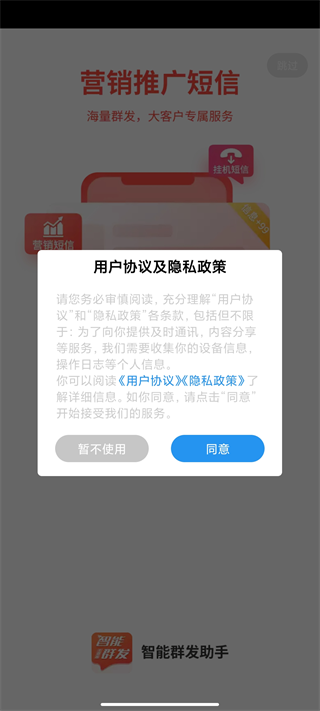 1、在本站下载短信助手app安装至手机,打开后点击同意按钮;
