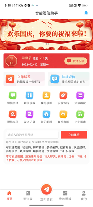 [365天]可以发送信息广告,节假日更容易增加发送时间,使群发信息没有限制。