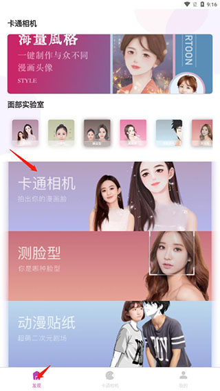 1、下载安装卡通相机app,点击进入软件的图标,授予软件一定的权限,进入首页区域;
