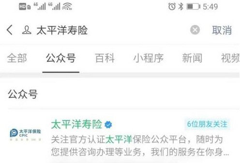 3、在搜索栏,输入【太平洋寿险】,点击【搜索】。