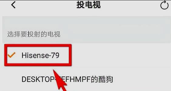 5、进入到投电视页面后,在页面上可以看到电视名称,点击选中要进行投屏的电视名称;