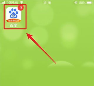 第一步:打开手机并在桌面上找到百度图标,点击进入。