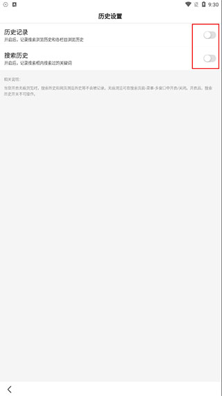 3、关闭历史记录、搜索历史即可;