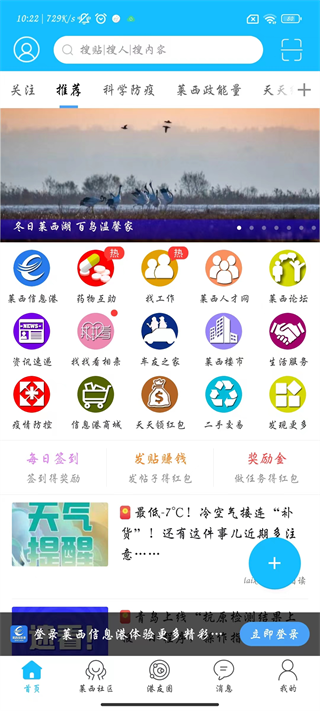 莱西信息港app是由青岛明行足信息技术有限公司专门为莱西地区的朋友们打造的一款以“经济、生活、服务”为主的综合服务平台,不仅包含了莱西论坛新闻、人才招聘,而且还包含了房产企业等信息资源,因此也可以叫做“莱西信息港招聘app、莱西信息港租房子app”,覆盖面非常广,深受当地居民喜爱。有了它,不仅可以随时随地查询当地天气情况、热门电影,实时观看了解当地新闻资讯,而且还可以发布生活类信息,例如:招聘求职、租房子等,从吃喝玩乐到生活住行,面面俱到。为了有效提升当地居民的办事效率,莱西信息港app还支持办理诸多政务业务,其中包含了:社保、公积金、户籍、交警业务、卫生防疫、出入境等业务,统统都能在软件中办理,不仅可以帮助你节省了外出排队的时间,而且还能有效提高办事效率。除此之外:莱西信息港app还新增了金币商城系统,用户在浏览、回帖或者搜索等操作就可以赚钱相应平台的金币,诸多任务等你前来完成,金币数量充足的情况下可以用于兑换实体商品、也可以用于提现。有需要的朋友们快快前来下载体验一番吧!