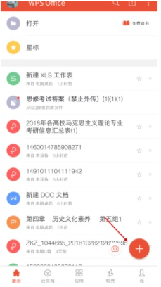 1.在手机桌面打开中WPS软件,点击进入WPS主页面,如下图所示。