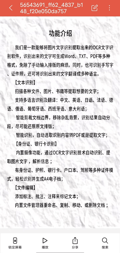 6. OCR识别:Office Lens支持OCR(光学字符识别)技术,能够将扫描的文档中的文字自动识别并转换成可编辑的文本,方便用户进行修改和复制。