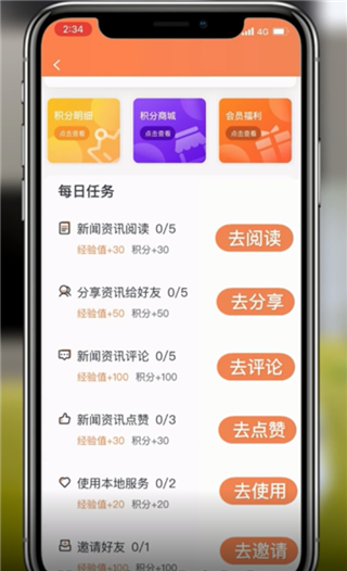 另外,在浏览、点赞、评论、分享新闻的过程中,都能获得一定数量的积分,使用本地服务,也会获得积分。